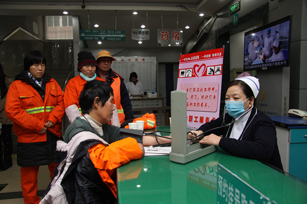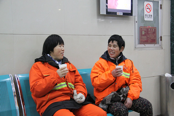 “请您进来歇歇脚,喝口热水!”今日上午11点多,负责清扫二七广场的5名环卫工人在完成上午的工作后,来到郑州市口腔医院的“爱心休息点”,喝杯热水暖暖身子,热心的医务人员还为他们量量血压,介绍一些口腔保健的常识。