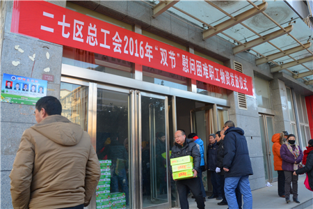 在春节即将到来之际,为确保困难职工度过一个愉快、温馨的节日,1月18日下午,二七区总工会主席张新云带领总工会领导班子及工作人员在“困难职工帮扶救助服务中心”举行双节慰问困难职工物资发放仪式,为114名困难职工发放了米、面、油、牛奶、鸡蛋等物资,切实把党和政府的关怀与温暖送进困难职工手中。