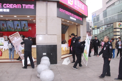 4月5日下午2点,局机关科室和执法中队90余名执法队员在局领导的带领下,组织12台执法车辆、4台私家车、2台出租车,对敦睦路、钱塘路等突店经营易反弹回潮路段,与管城区、金水区交界区域以及大型商场周边的市容进行强力整治,整治中执法队员充分发扬不怕累、能吃苦、敢碰硬、勇担当的作风,对大同路敦睦路口顽固占道经营商贩、一马路商户突店经营、促销广告等市容乱象进行彻底整治。