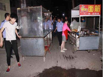至凌晨1点左右集中整治行动结束时,经过4个多小时的拉网式整治,共暂扣电动三轮车4辆、铁推车8辆、人力三轮车3辆、遮阳伞4把,桌凳等其他物品60余件。