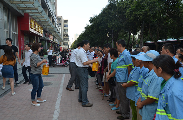9月23日下午,在国庆即将来临之际,二七区总工会副主席闫崇建带领总工会工作人员在帮扶中心举行节日救助困难职工物资发放仪式,为106名困难职工发放了米、面、油、牛奶、鸡蛋等物资,给困难职工带去了党和政府的关怀及节日的问候与祝福。