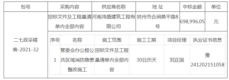 本次中标公告在《河南省政府采购网》《河南省电子招标投标公共服务平台》、《二七区政府采购网》、《郑州市公共资源交易中心网》上发布,成交公告期限为1个工作日 。