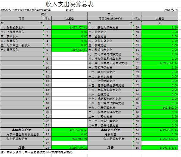2015年郑州市食品药品监督管理局二七分局收入支出决算总表
