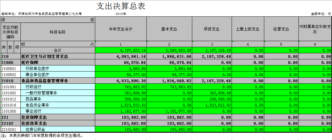 2015年郑州市食品药品监督管理局二七分局支出决算总表