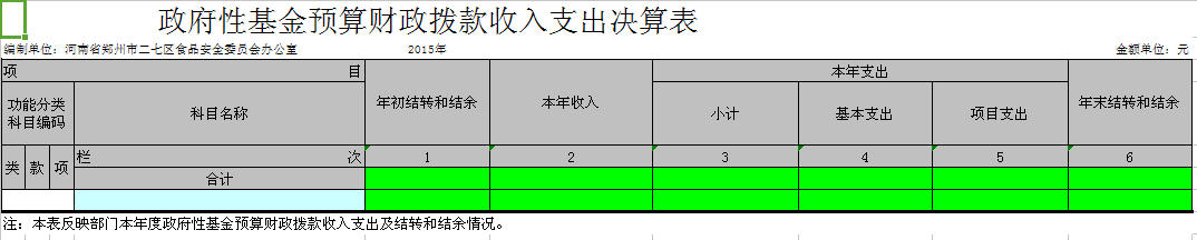 2015年郑州市二七区食品安全委员办公室政府性基金预算财政拨款收入支出决算表