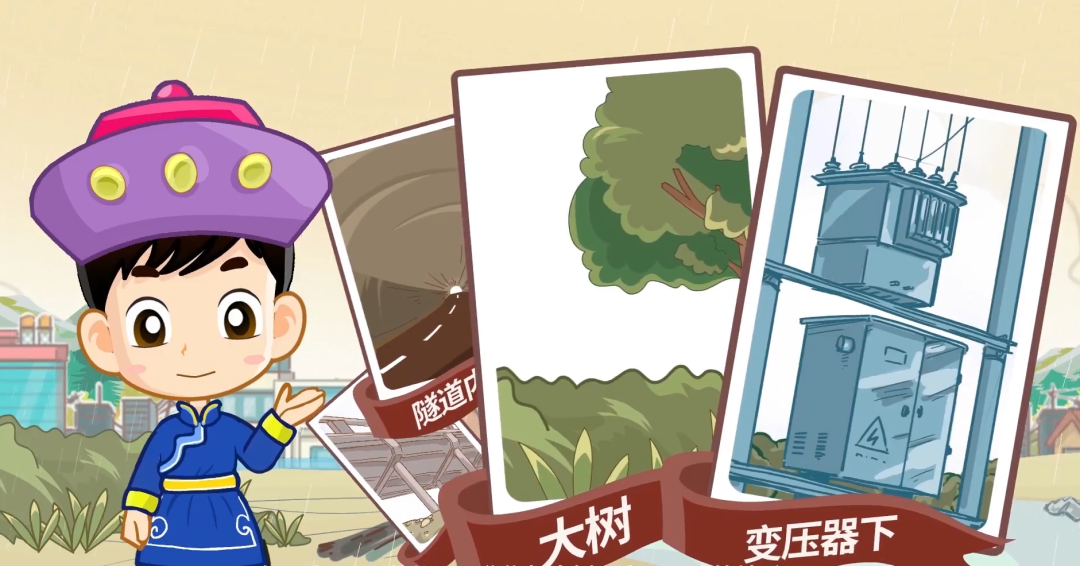 降雨时,不要到桥涵下隧道内、大树和变压器下等地避雨
