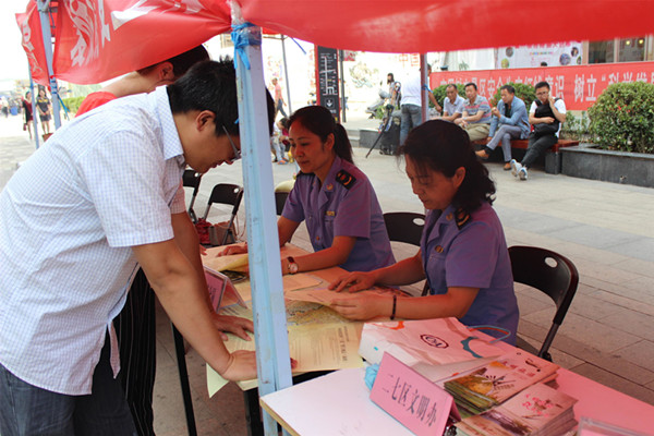 近日,二七区工商质监局德化街所开展了“党员志愿者进社区集中服务月”活动。德化街所在职的10名党员分别到大同社区和德化社区报到,按照通知要求认领服务项目并公示承诺,与社区工作人员一起走进社区,开展校园周边环境整治,社区治安巡逻,《消费者权益保护法》宣讲等活动。