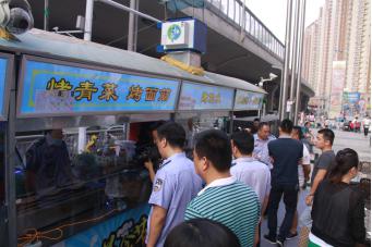 会场部分结束后,二七区城市管理行政执法局带领商户观摩了无露天烧烤、安装油烟净化装置安装到位的鑫苑啤酒广场,在现场同业商户认真参观了油烟净化装置安装的情况,实地观看了油烟净化效果。下步,执法局将对安装不到位、不符合标准的依法责令停业,并予以上限处罚。