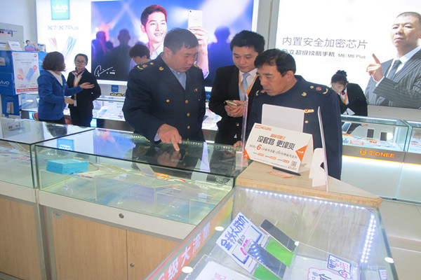 二七区工商质监局嵩山路所积极落实二七区工商质监局工作部署,安排执法人员逐一走访检查辖区商场、大型超市、手机连锁店、电子产品专营店等电子产品集中销售区域,严格对照消保科发布的不合格电子产品信息清单,仔细查看产品名称、商标、型号规格、生产单位等信息,暂未发现名单中所列的不合格商品。