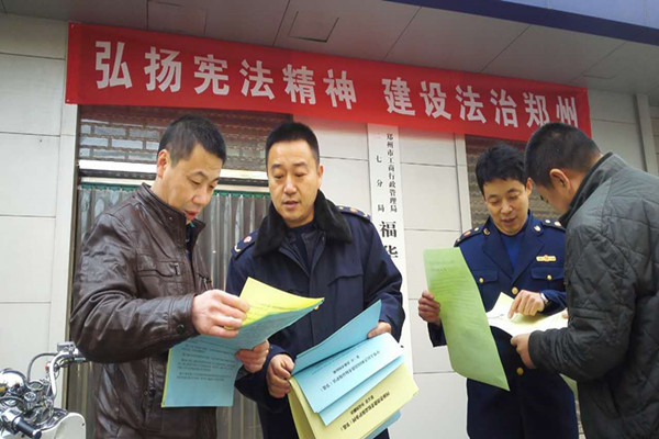 为进一步提高辖区经营者和消费者的守法经营和维权意识,进一步落实工商监管服务职能,今日,二七区工商质监局福华街所开展为期一周的“法律法规宣传周”活动。活动主要围绕和广大经营者、消费者息息相关的法律法规的宣传普及,紧密结合辖区实际,以悬挂宣传条幅、发放宣传彩页、社区法规讲座等形式,扩大法律法规的普及面和社会认知度,为经营者守法经营、消费者依法维权打下坚实的基础。图为工商所同志向商户发放宣传单并现场讲解。