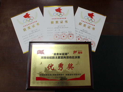 12月11日,由河南省体育局、河南省教育厅、河南省科学教育厅主办主办的“重走长征路”河南省校园主题定向活动总决赛在郑州大学体育学院拉开序幕。在王晓彩老师的带领下铁三官庙小学代表队在男女个人赛中获得佳绩,同时获得优秀奖。