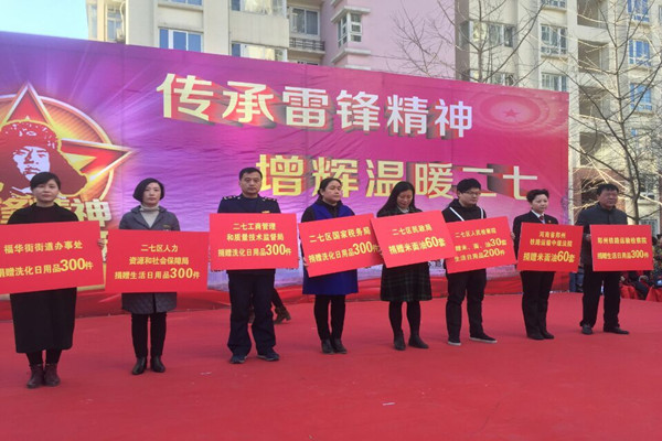 “传承雷锋精神,增辉温暖二七”,3月2日上午,二七区工商质监局组织学雷锋志愿者参加了由区委宣传部、区文明办组织的大型学雷锋宣传活动。活动中,我局设立宣传台、宣传展板。志愿服务者以饱满地热情现场向群众发放有关工商法律法规、特种设备等宣传材料,讲解如何辨别真假商品,受理群众消费咨询和投诉。活动当天,我局共捐献洗化日用品300多件,向群众发放宣传材料200多份,现场受理群众消费咨询20余起。通过开展学雷锋活动,展现了工商质监部门的良好形象,受到了群众的好评。