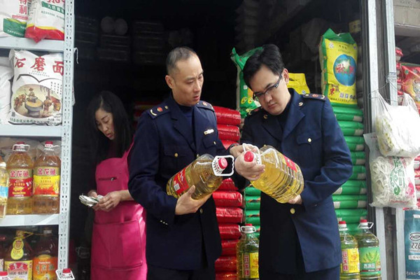 近期有新闻报道曝光,郑州市仍然有地沟油生产销售情况存在,为确保辖区的内食用油合格合规,二七区工商质监局人和路所全体人员出动对辖区内粮油销售商户进行清查。该次专项检查,集中对辖区内超市、集贸市场、粮油销售摊点、及其大小饭店食用油的销售及使用情况进行全面排查;检查食用油的购进来源和产品质量,确保消费者购买的食用油都是质量合格、来源合法的食用油。此次检查中未发现有不合格食用油在辖区内流通,但人和路全体人员将继续严把质量监管关,做好了为消费者的合法权益及检查长期攻坚准备。