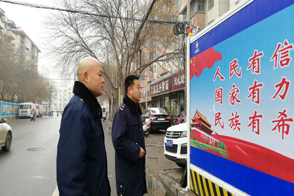 近日,按照上级关于开展违规公益广告清查工作的指示精神,二七区工商质监局福华街所执法人员顶风冒雪,对辖区户外公益广告进行认真排查,重点对公益广告内容是否有错别字、是否存在与商业广告混搭、是否破损陈旧等现象进行清查,确保公益广告的严肃性,为辖区精神文明建设提供保障。