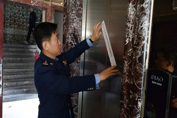 根据市质量监督局的要求,二七区工商质监局人和路所积极开展特种设备检查的专项行动。在此次检查行动中,我所执法人员发现辖区内九龙海天商务酒店使用的电梯有安全隐患。我所随机向分局特安科提出业务指导的申请。特安科迅速回应,在殷军科长的现场指导下,我所对该电梯进行了查封行动。