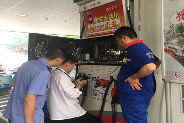 七区工商质监局淮河路所联合局计量科对加油站进行检查