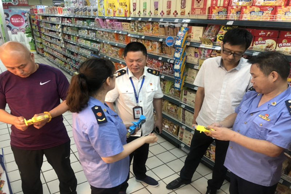 近日,二七区工商质监局高鹏局长带领质量监督科、解放路工商质监所对北京华联超市进行认证检查。主要检查了电器、儿童玩具、有机食品等产品。最后高局长强调,商场超市要切实负起责任,把好产品质量准入关,确保产品质量安全。