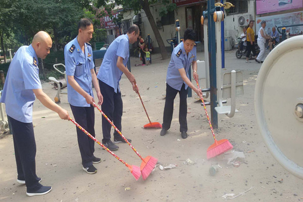 近日,二七区工商质监局福华街所积极配合街道办事处“百日清洁”联合行动,组织工商质监所同志们顶烈日、冒酷暑到社区参加义务劳动,同时向社区群众宣传“打击传销”、“非法集资”、“电梯安全”等方面的法律法规,受到辖区群众和社区同志的一致好评。
