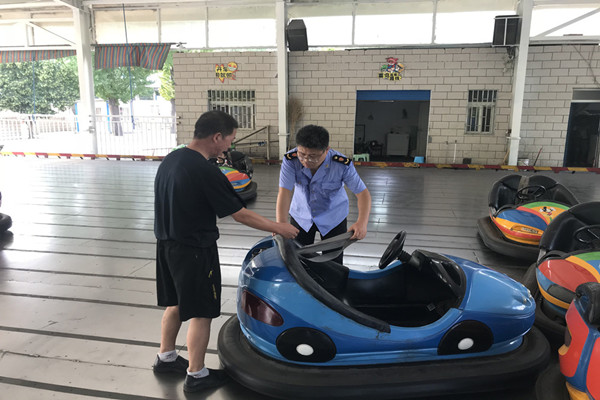 为确保辖区大型游乐设施安全运行,保障游客安全,二七区工商质监局铭功路所根据局特安科工作要求,认真排查公园内在用的大型游乐设施,重点对证照办理、管理制度、设备安全、定期检验、运行记录及自检记录、警示标志、安全装置、人员持证上岗、应急演练等情况进行现场检查,消除安全隐患。排查未发现有童星游乐设备有限公司生产的大型游乐设施。