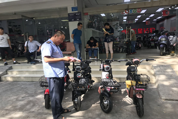 二七区工商质监局淮河路所配合市工商局对辖区电动车进行抽检