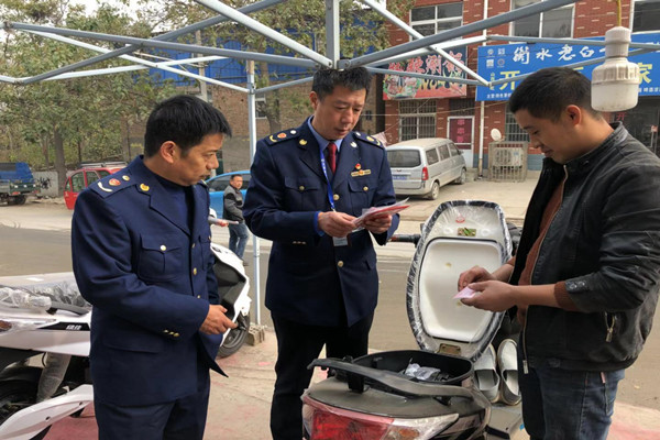 二七区工商质监局马寨所在交通秩序综合治理过程中,立足职能干好本职工作。在要求电动车经营户悬挂营业执照、及时记录进销货台账、不得销售违规电动车,严禁商户销售非法改装电动车,同时还要求辖区管理员不定期进行检查,督促电动车经营户履行上述义务。对电动车的销售行为,确确实实做到了常抓不懈。
