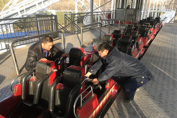 元旦假期来临,为保障游客高峰期设备安全运行,二七区工商质监局铭功路所开展大型游乐设施安全隐患排查。对大型游乐设施的运行记录、日常维护、设备检验、人员持证、应急预案、安全管理制度的落实等情况进行重点检查。并重点核实了操作人员是否持证上岗,安全带、安全压杆、安全锁具等安全保护装置是否完好、牢固、紧实,确保游客安全。