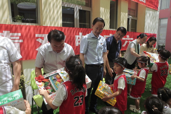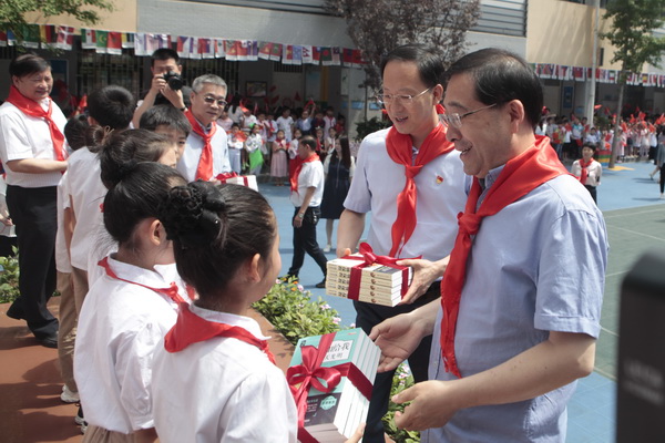 向少先队员代表赠送节日礼物