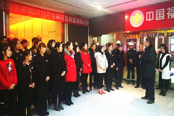 近日,二七区工商质监局德化街所联合德化无限城在商场4楼开展了模拟“电梯困人事故”的应急演练。演练活动邀请了二七工商质监局副局长李民凡、特安科科长殷军参加现场指导。
