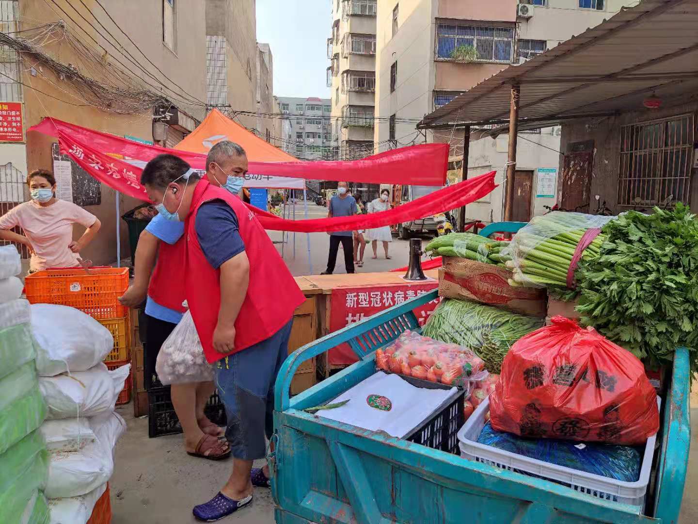 7月31日,为防止疫情扩散,长江路街道张巍寨锦祥小区、长江一号社区海豫花园小区被相继封闭。8月7日,新一轮变异病毒疫情防控形势愈加严峻,疫情对居民的生产生活产生了巨大的影响,出行不便、快递停运、粮油果蔬供不应求,一日三餐成了群众的燃眉之急。为了保障群众的“菜篮子”,长江路街道创新“120”团购配送模式,因地制宜,有针对性地开展封控区物资供应工作,让居家购物更加高效便捷和安全。