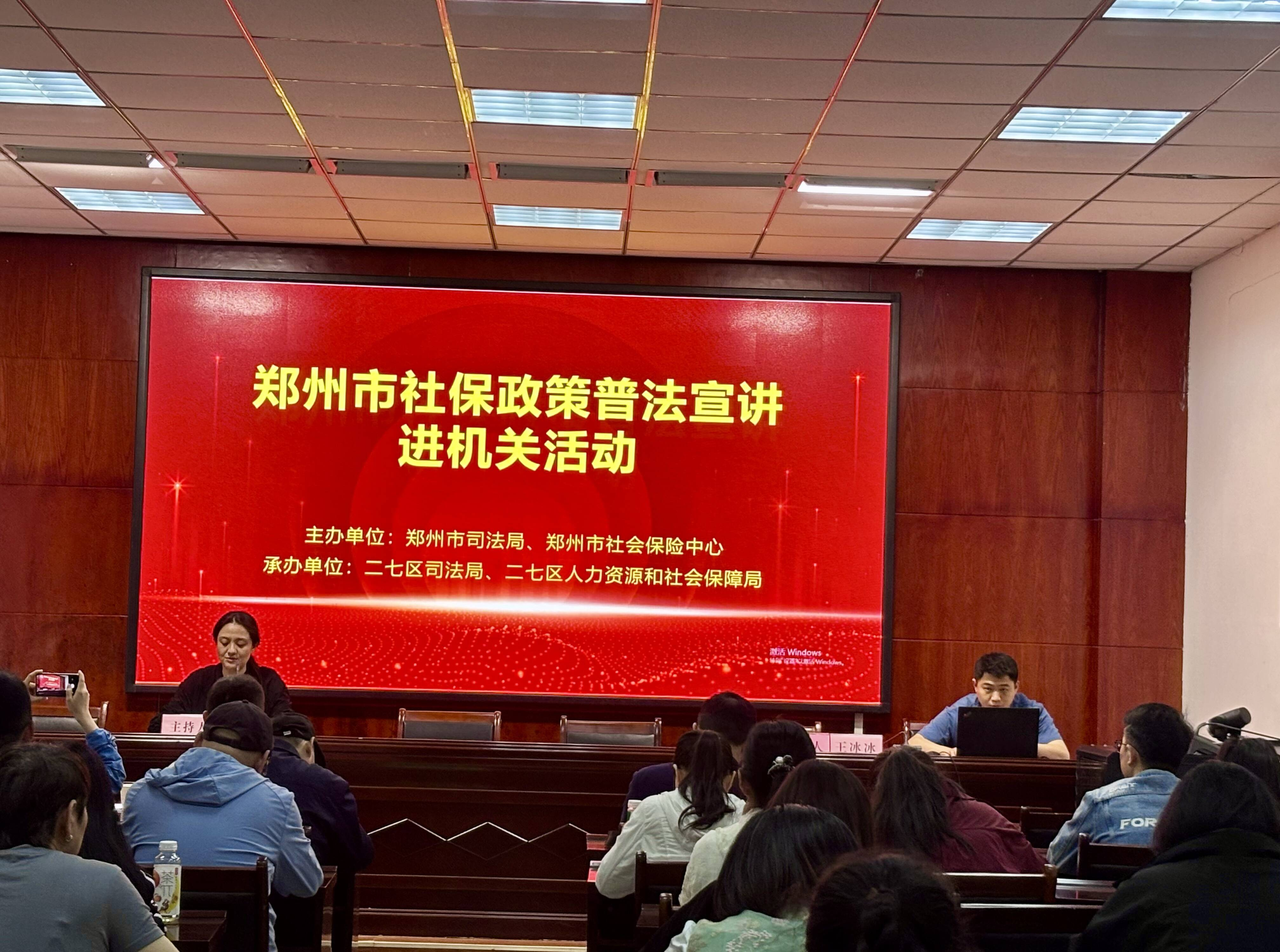 为深入开展“精准普法基层行”活动,进一步提升社保领域法治意识,切实维护社保基金安全,由郑州市司法局、郑州市社会保险中心主办,二七区司法局、二七区人力资源和社会保障局承办的郑州市社保政策普法宣传讲座,于4月17日上午在二七区顺利开讲。