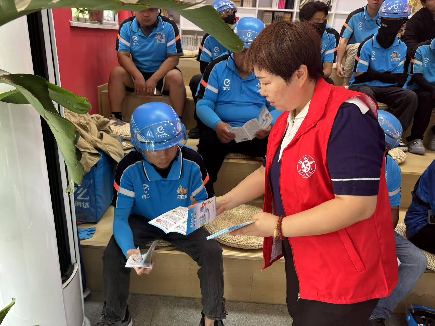 活动现场,法律顾问河南程功律师事务所王艳慧律师为外卖员们带来了一场生动的普法讲座。她围绕与外卖员日常工作、生活息息相关的法律问题,结合《民法典》相关条文,通过典型案例深入浅出地讲解了劳动合同纠纷、交通事故责任认定、消费者权益保护等内容,帮助外卖员们了解自身权利与义务,提高风险防范意识。讲座结束后,社区“法律明白人”耐心细致地解答外卖员提出的各类法律问题。