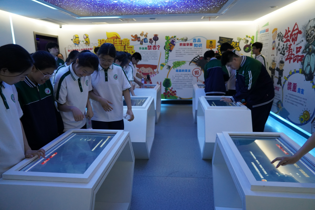 在戒毒所民警引导下,学生们依次参观“生命之殇”禁毒教育展厅,充分了解中国的禁毒史,从近代鸦片泛滥给国家带来的巨大创伤,到中华人民共和国成立后坚决打击毒品犯罪的一系列举措,让学生们深刻认识到毒品给国家和民族带来的沉重灾难;通过全息投影展示的吸毒者器官病变模型、VR模拟毒瘾发作场景、交互式禁毒知识答题系统等科技手段,直观呈现毒品对身心的摧残和对社会的危害;通过展示各种毒品的实物模型,学生们对海洛因、冰毒、摇头丸等常见毒品有了更直观地认识。不仅如此,戒毒所民警还拿出一些伪装成饮料、糖果、巧克力的新型毒品,向学生们强调其隐蔽性和迷惑性。在讲解过程中,民警不时提问,学生们踊跃回答,现场气氛热烈,使学生们对毒品有了清晰的辨别能力。