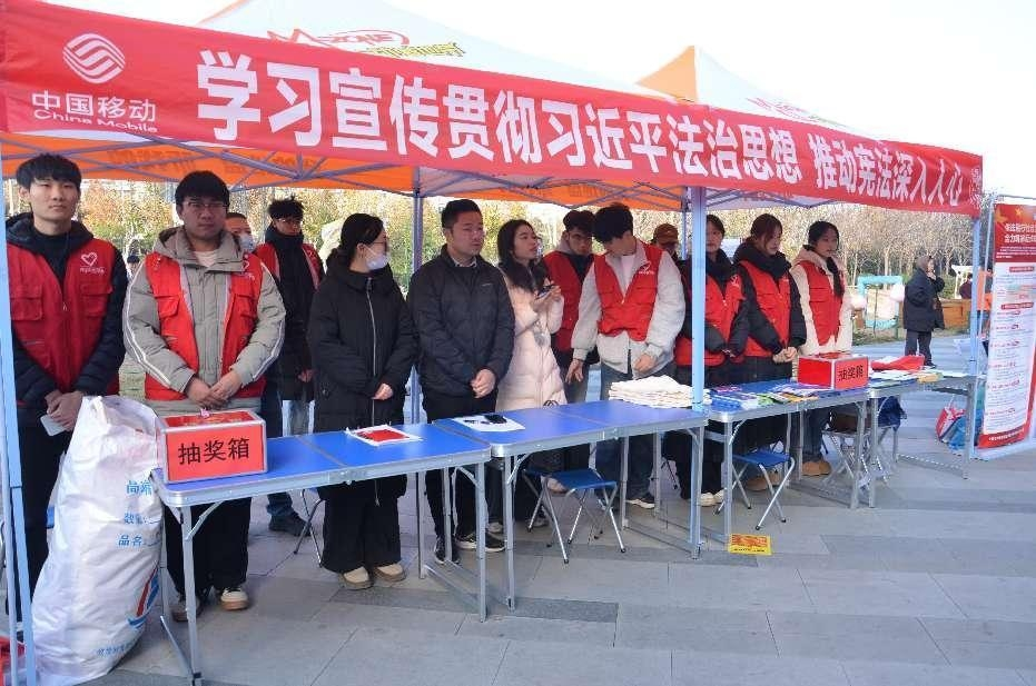 10个分会场同步发力,郑州移动二七分公司、河南体彩郑西分中心和二七区律工委公益活动与社区服务中心、执法监督协会在分会场开展法律宣传咨询,形成“主会场引领、分会场联动”的普法格局,切实将宪法知识送到群众身边,为建设法治二七筑牢基础。