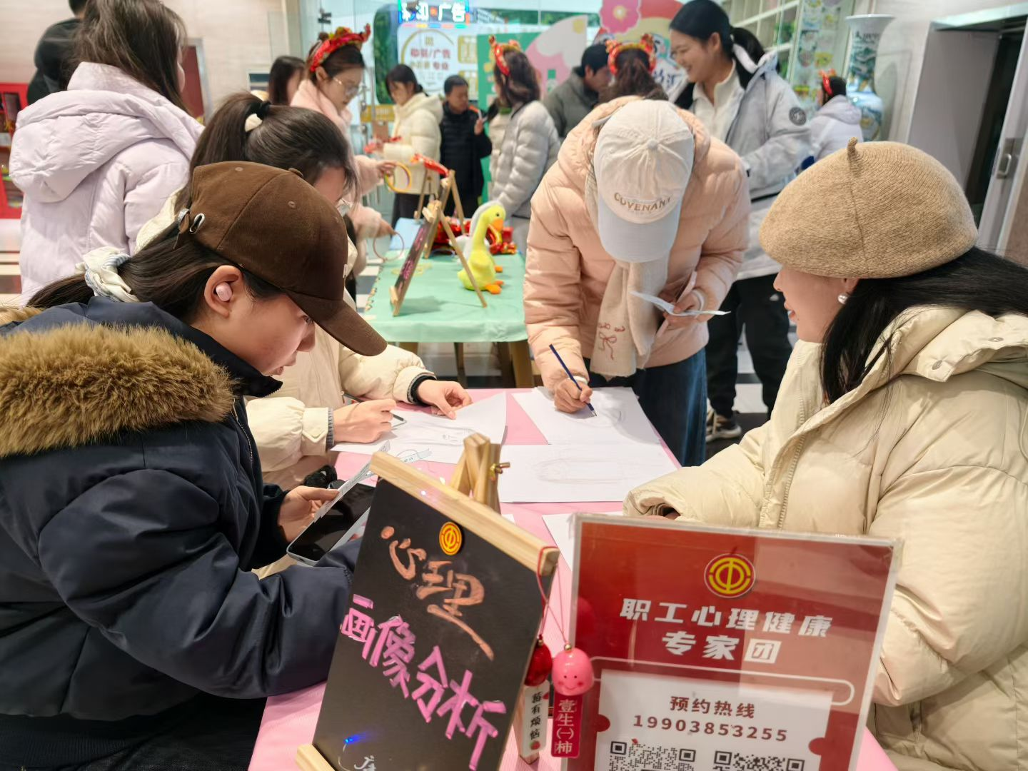 本次“心愈市集”以轻松互动、专业服务为核心,设置了趣味解压游戏、专业心理画像分析、通关礼品派送三大板块,吸引了众多职工利用午间休息时间参与。在趣味解压游戏区,“爱的抱抱”“欢乐套大鹅”“情绪交换站”等互动游戏深受欢迎,职工们在欢声笑语中放下工作的疲惫,拉近了彼此的距离;专业心理画像分析摊位,特邀心理咨询师通过“心理情绪画像分析”,为职工们一对一解读情绪状态,提供个性化的心理疏导建议,帮助大家更好地认识自我、调节情绪;活动现场还为每位参与者准备了“治愈小确幸”暖心礼品,让职工们在收获快乐的同时,也感受到满满的关怀。