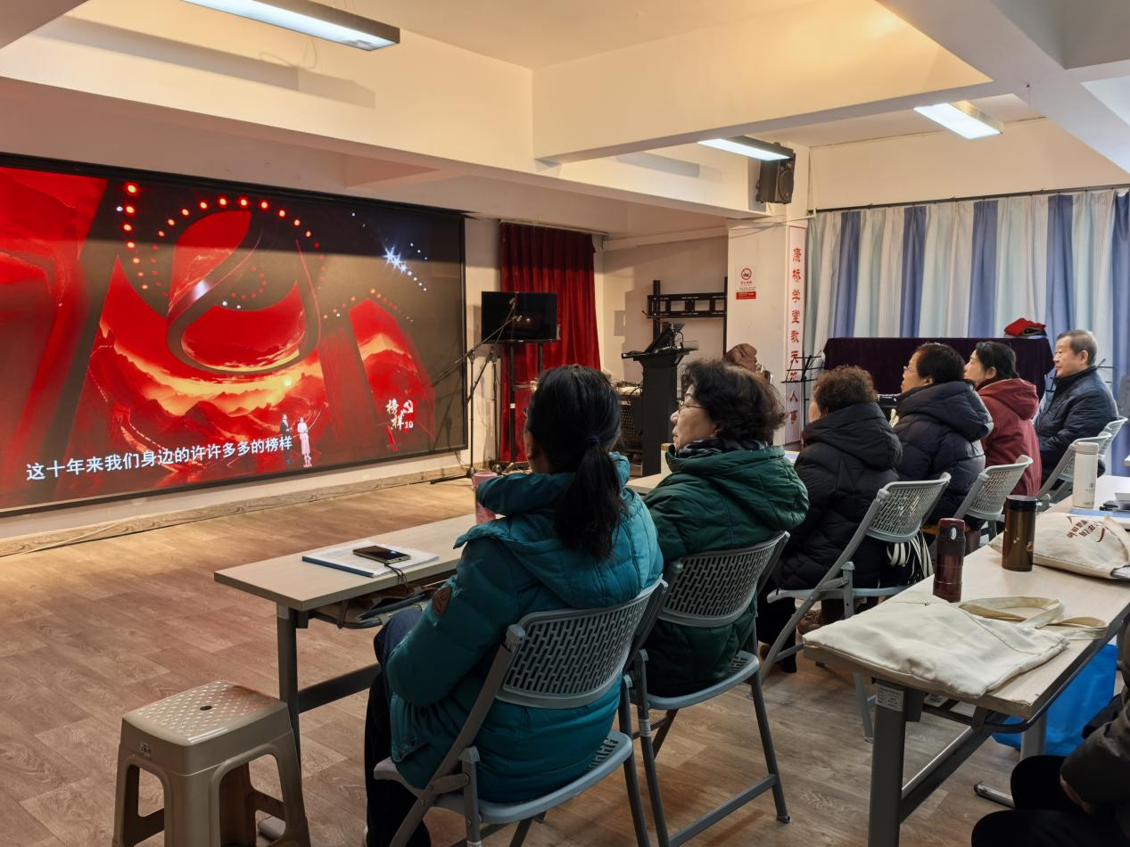 社区党总支提前谋划部署,针对党员年龄结构、居住情况,精准划分学习场景。线下设立社区党群服务中心主会场,组织30余名党员、楼栋党小组组长集中观看。现场设置学习交流讨论组,营造严肃认真的学习氛围;针对年老体弱、行动不便的退休党员,社区通过党员微信群推送节目直播链接、回放视频及核心看点解读,确保学习“一个都不落下”。节目中,茹振钢深耕农业一线保障粮食安全、梁建英攻坚高铁技术领跑世界等先进事迹,深深打动着每一位党员,线下会场响起阵阵掌声,线上群内持续刷屏感悟留言,形成“隔空共鸣、同频学习”的良好态势。