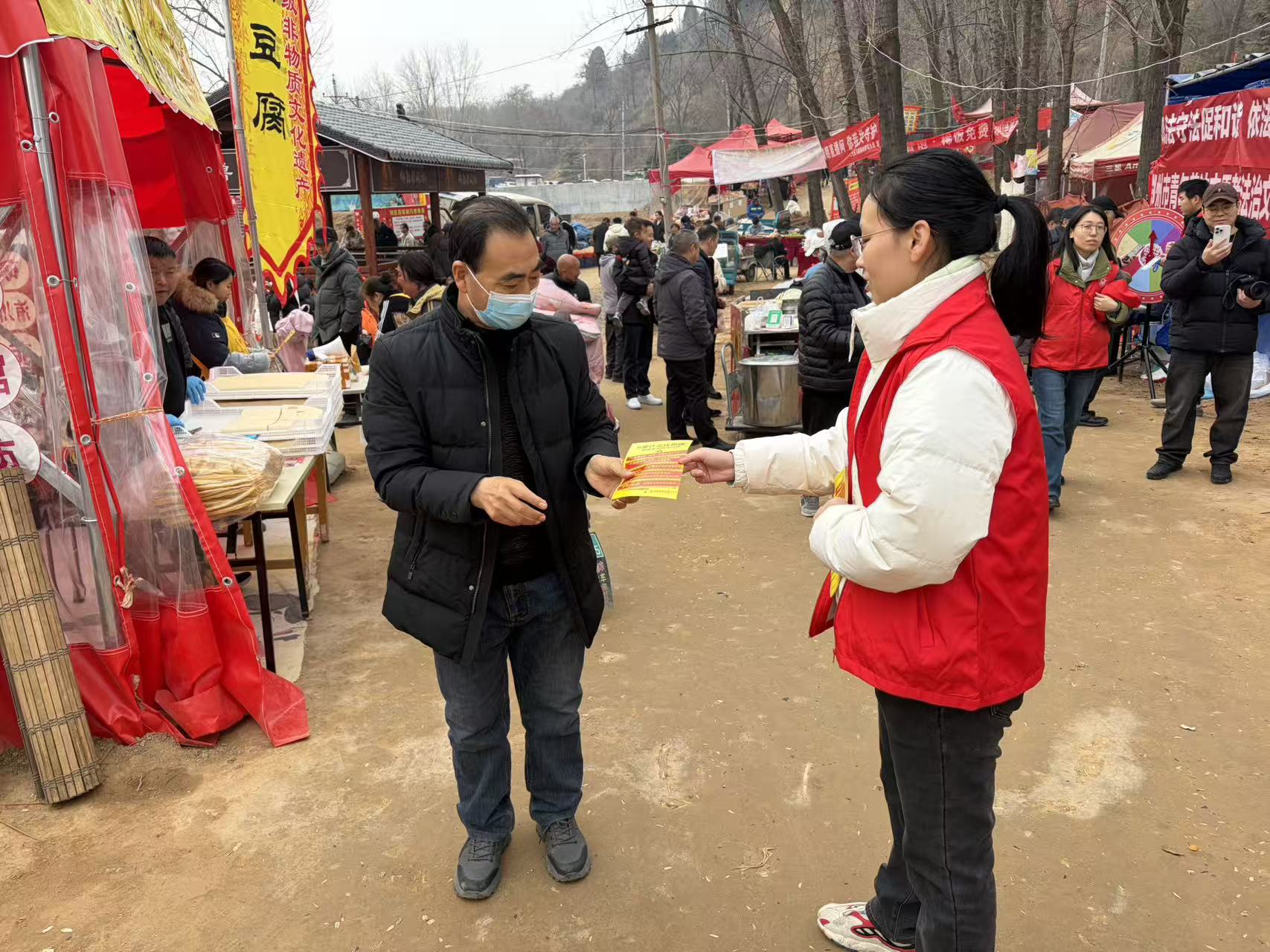 活动现场,社区法律顾问、社区“法律明白人”组成的普法志愿小分队,主动向前来赶集的群众靠拢,耐心解答群众咨询的婚姻家庭、邻里纠纷、电信诈骗等与日常生活密切相关的法律问题,用通俗易懂的语言解读法律条文、剖析典型案例。同时,志愿者们向群众发放普法宣传页,将实用法律知识送到群众手中,让群众在逛集会、品年味的过程中,潜移默化接受法治熏陶,增强依法办事、依法维权的意识。