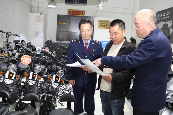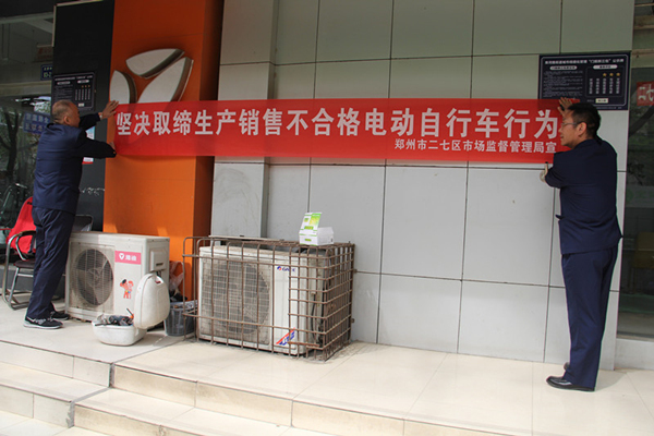 电动自行车新强制性国家标准《电动自行车安全技术规范》(GB 17761-2018)于2019年4月15日起实施,我局根据城区道路综合治理工作的要求,结合辖区工作实际,对辖区内销售电动自行车的商户开展新标准宣传活动,做好新标准的落实。在辖区显著位置悬挂宣传条幅,张贴关于新标准的宣传彩页,向商户发放行政告知书,广泛宣传新标准,做到宣传落实活动全覆盖。执法人员重点就新国标进行宣传讲解,重点宣传新标准内涵和条款变化(整车质量、最高车速和电机功率等)内容,要求经营单位销售符合《技术规范》的电动自行车产品,严禁在销售的电动自行车商品中掺杂掺假、以次充好、以假充真、以不合格商品冒充合格商品,严禁销售无厂名、厂址等来源不明商品等违法行为。严禁销售商标侵权,擅自使用与他人有一定影响的商品名称、包装、装潢等相同或者近似的电动自行车。严禁超经营范围非法改装和拆卸原厂配件、更换大功率蓄电池、拆除限速器等关键性组件的行为。